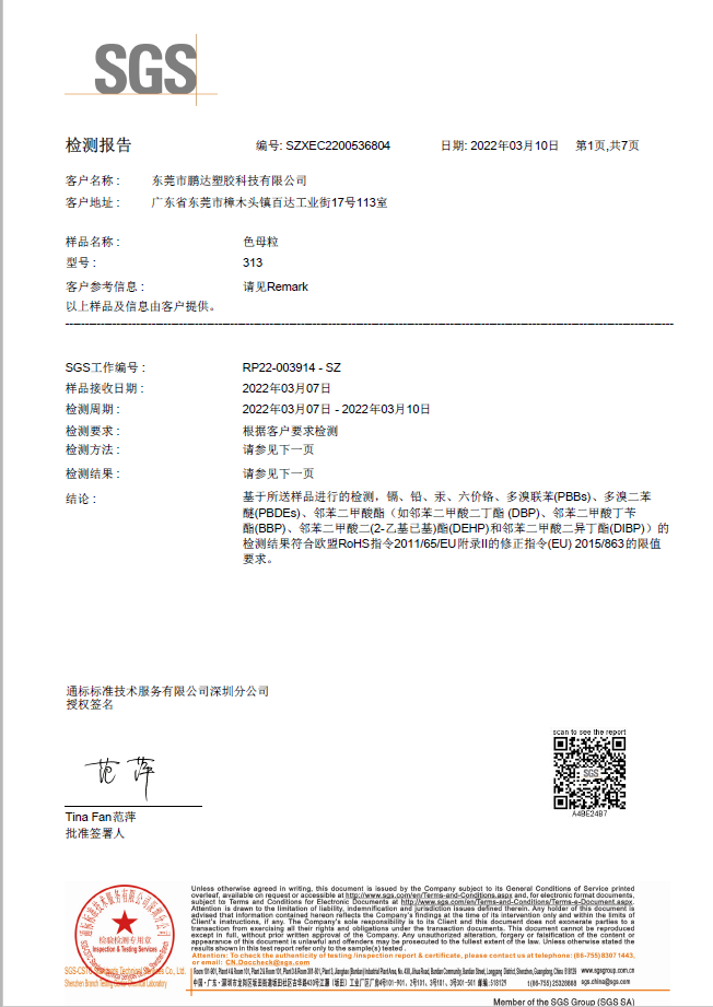东莞市鹏达塑胶科技有限公司是一家集色母、色粉、功能母粒、染色抽粒、改性工程塑料的研发、生产、销售于一体的生产企业,座落于中国塑胶商贸重镇-广东省东莞市樟木头镇,公司建立了一套完善的研发生产、品质管理、销售服务体系,依托自身强大的研发能力及严谨高效的管理,生产高品质、高技术含量的健康环保色母粒和多功能母粒,年生产能力达万吨,给广大客户提供了可靠的交货保障。